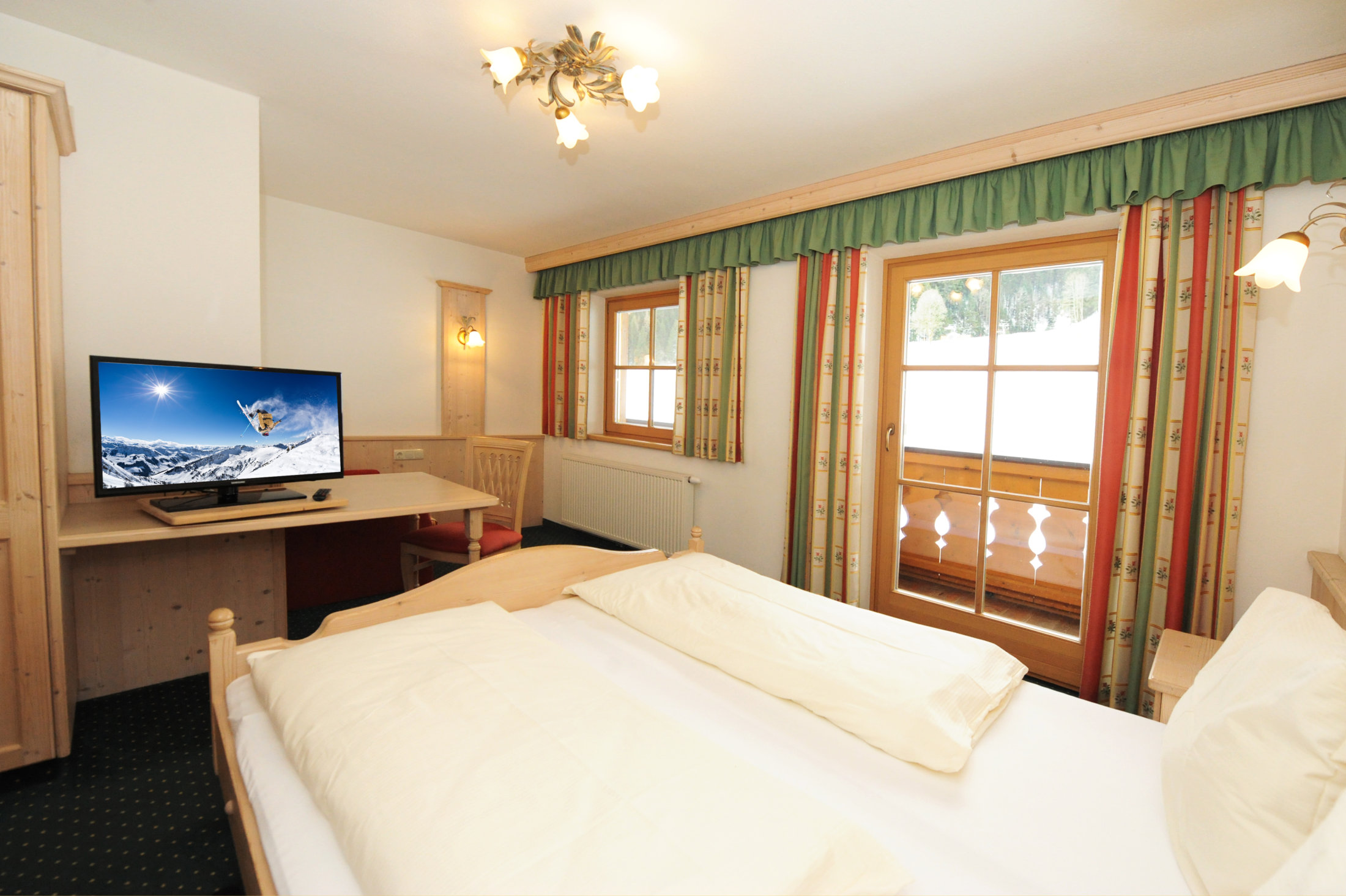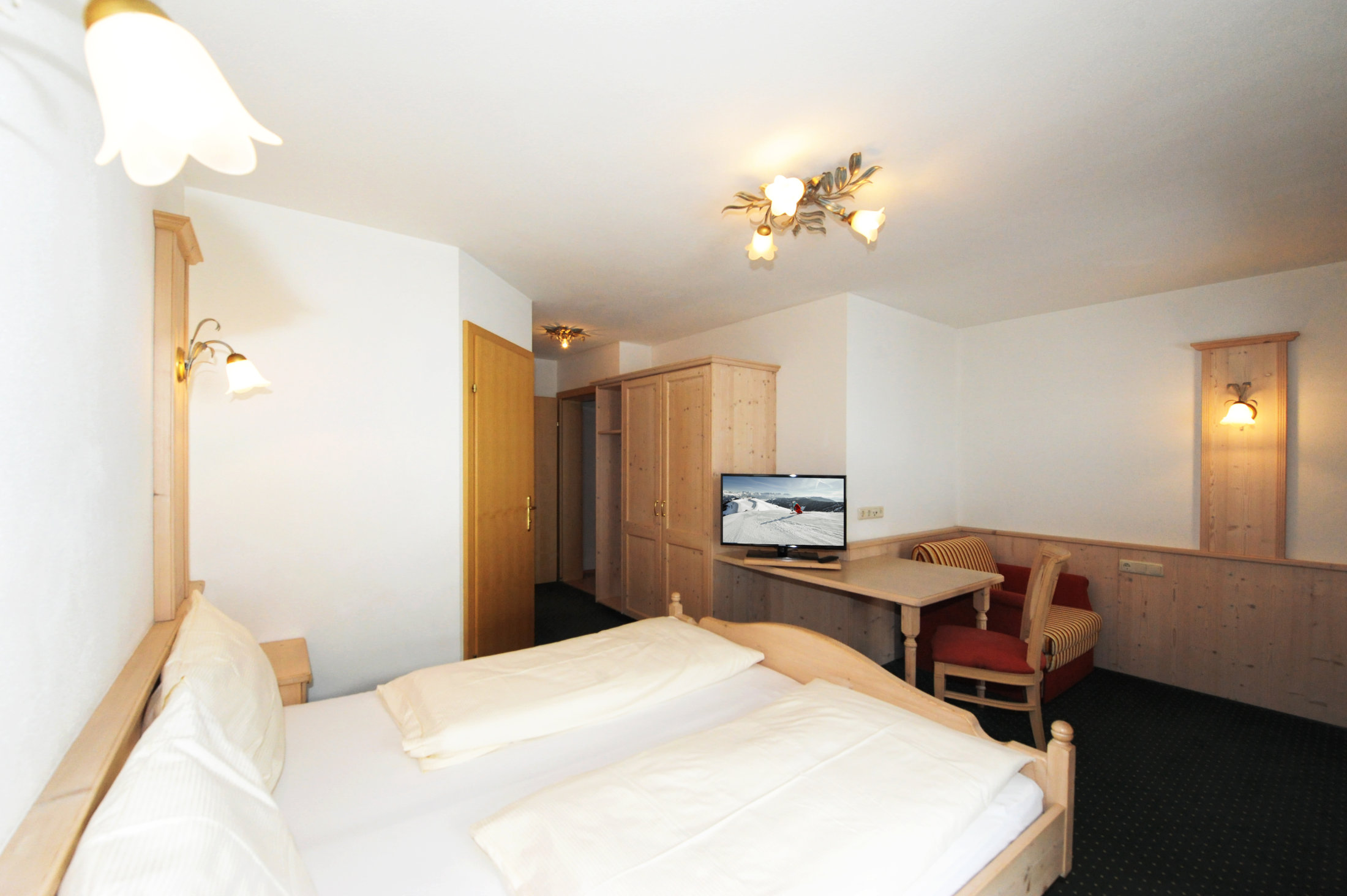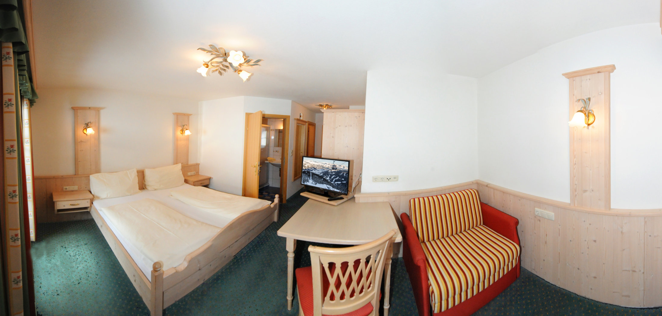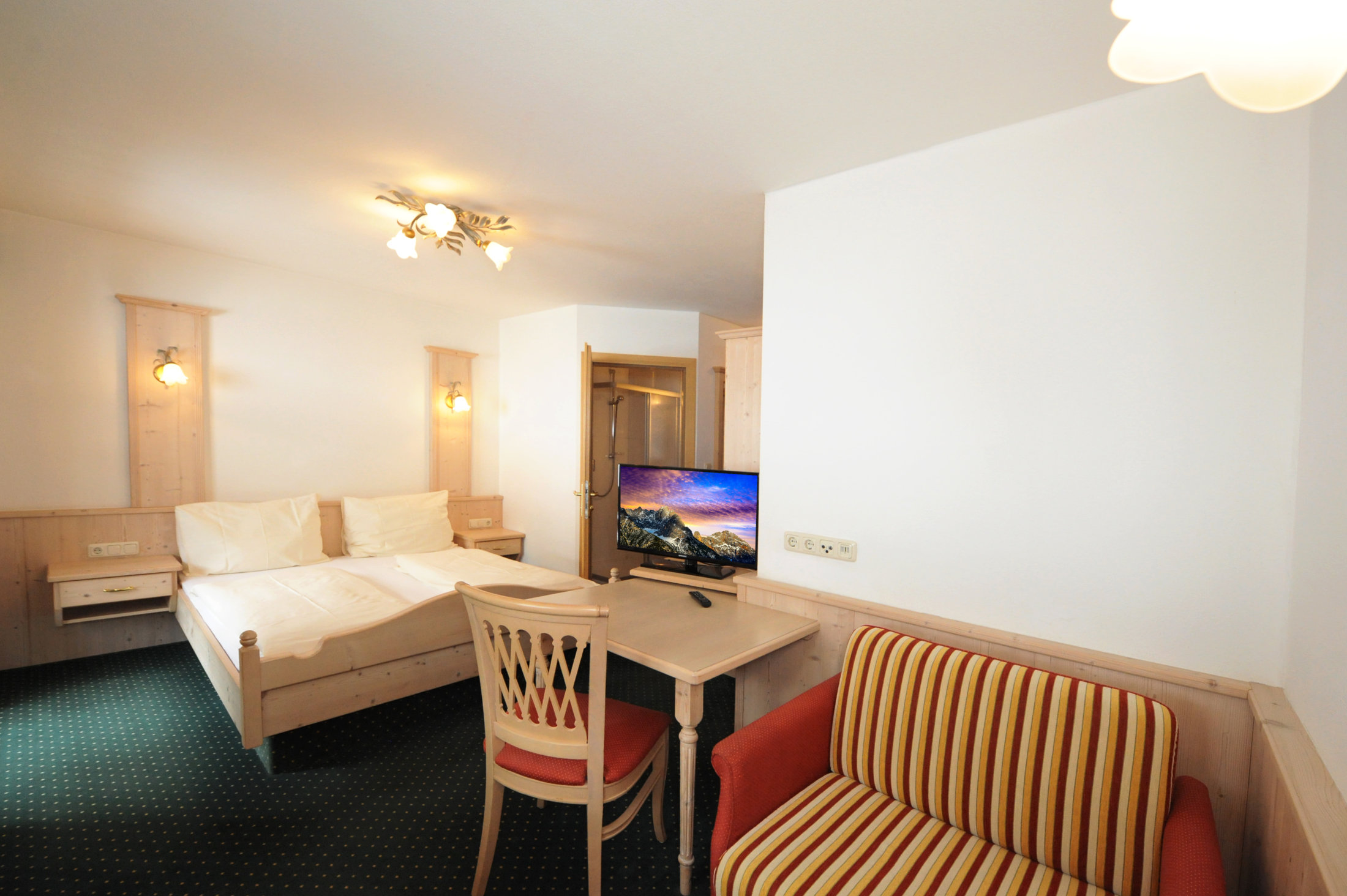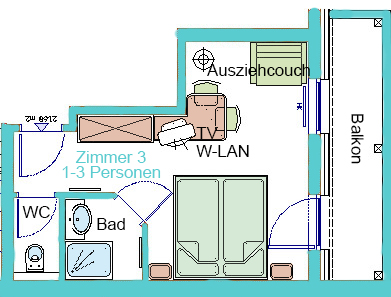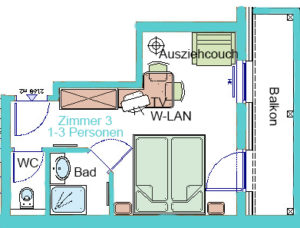 Zimmer 3 ist Bestandteil von Wohnung 2 und kann auch bei Verfügbarkeit separat gebucht werden. Das Zimmer verfügt über ein Doppelbett, eine Komfortausziehcouch für eine Person, ein Duschbad und ein seperates WC. Bettwäsche und 2 Handtücher pro Person sind im Preis inkludiert und alle Betten sind überzogen. Das Zimmer ist natürlich auch mit W-LAN und TV ausgestattet. Außerdem erhalte Sie eine extra Matratze für noch mehr Komfort wehrend Ihres Aufenthalts.