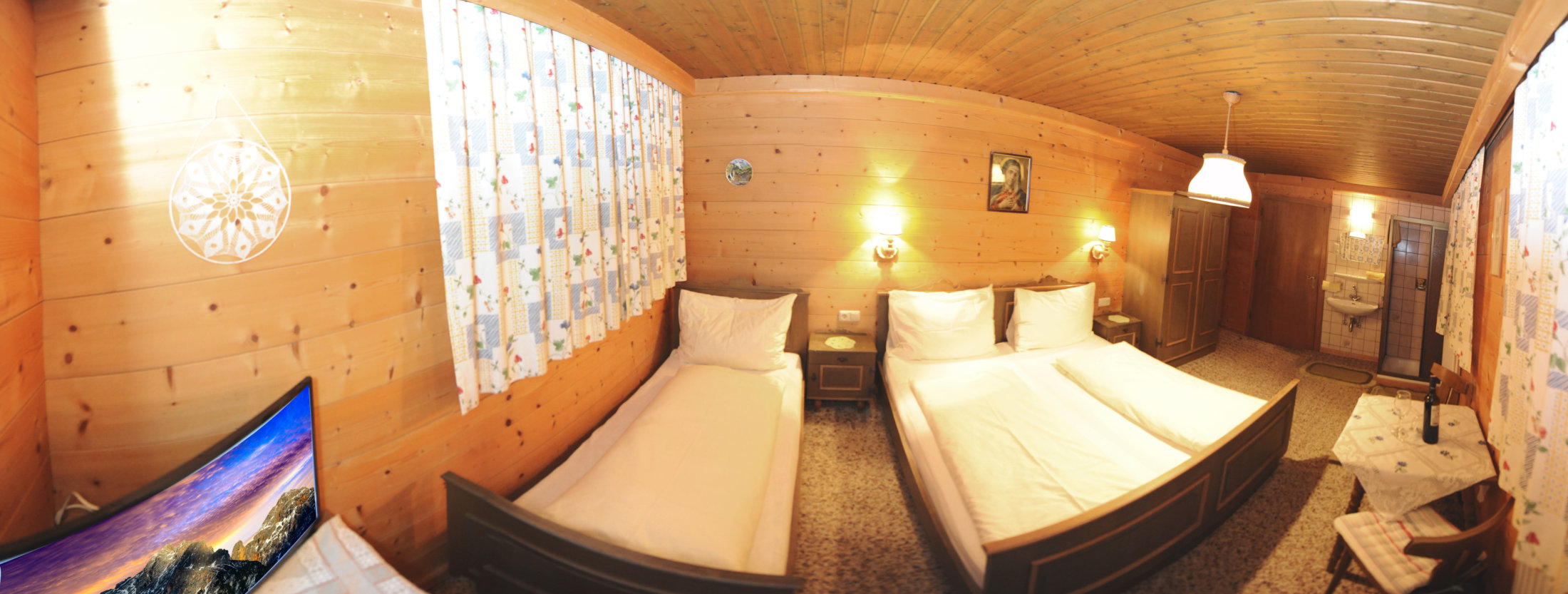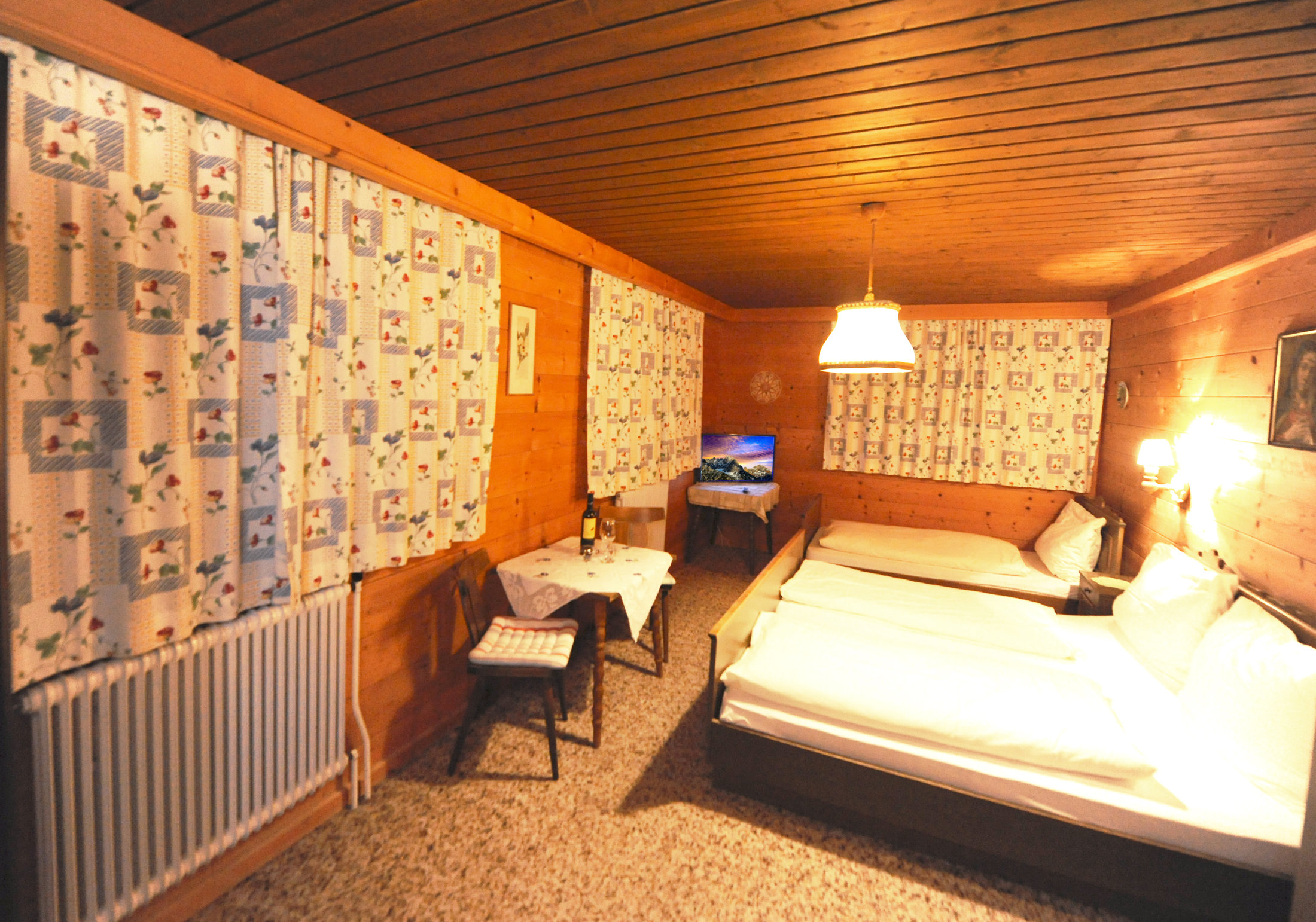 Das Riederhof Nostalgiezimmer ist im klassischen Flair einer alten Skihütte eingerichtet, für jene die das Traditionelle bevorzugen. Das Zimmer verfügt über ein Doppelbett, ein zusätzliches Einzelbett und eine Dusche. Das WC befindet sich auf dem Gang. Bettwäsche und 2 Handtücher pro Person sind im Preis inkludiert und alle Betten sind überzogen.Selbstverständlich ist unser Nostalgiezimmer ausgestattet mit TV und W-LAN.